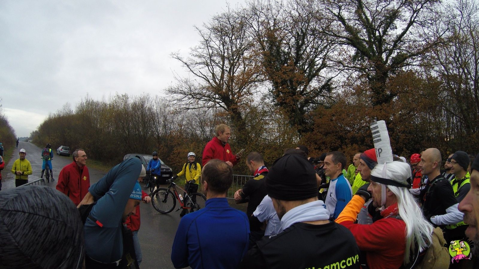 L'objectif sur cette course est de se faire plaisir pour le dernier dossard de l'année, pas de prise de tête, un pied devant l'autre. A ce sujet, un bénévole nous indique que nous venons de passer le premier kilomètre.