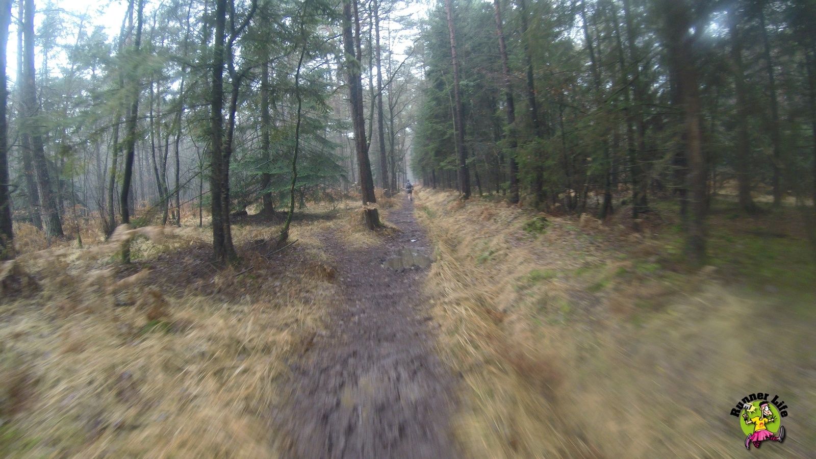 25km 2h07 le trail se poursuit toujours en forêt sur des chemins toujours aussi roulant mais la pluie des derniers jours les rend un peu moins facile à pratiquer.
